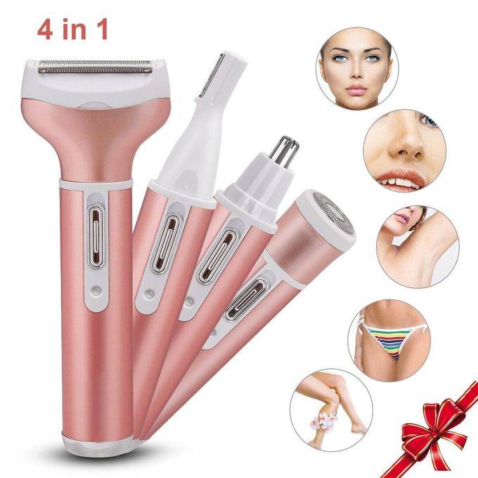 مجموعة Kemei النسائية 4 في 1: ماكينة حلاقة كهربائية قابلة لإعادة الشحن، ومزيل شعر للجسم، والأنف، والحواجب