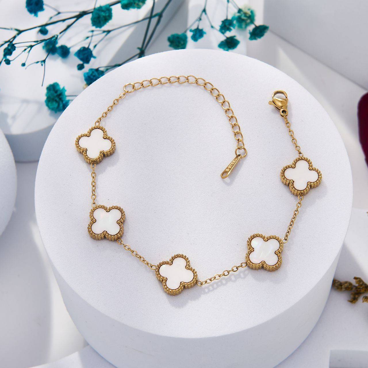 هل تبحثين عن قطعة مجوهرات تجمع بين الأناقة الكلاسيكية والجودة العالية المقاومة للتغير؟ نقدم لك مجموعة أساور “زهرة البرسيم” الفاخرة المطلية بالذهب. في الواقع، هذه الأساور ليست مجرد إكسسوار، بل هي استثمار في أناقتك اليومية والمسائية. علاوة على ذلك، هي مستوحاة من رموز الحظ والجمال الطبيعي، لذلك، تتميز هذه المجموعة بتصاميمها الساحرة والمنفذة بأدق التفاصيل.